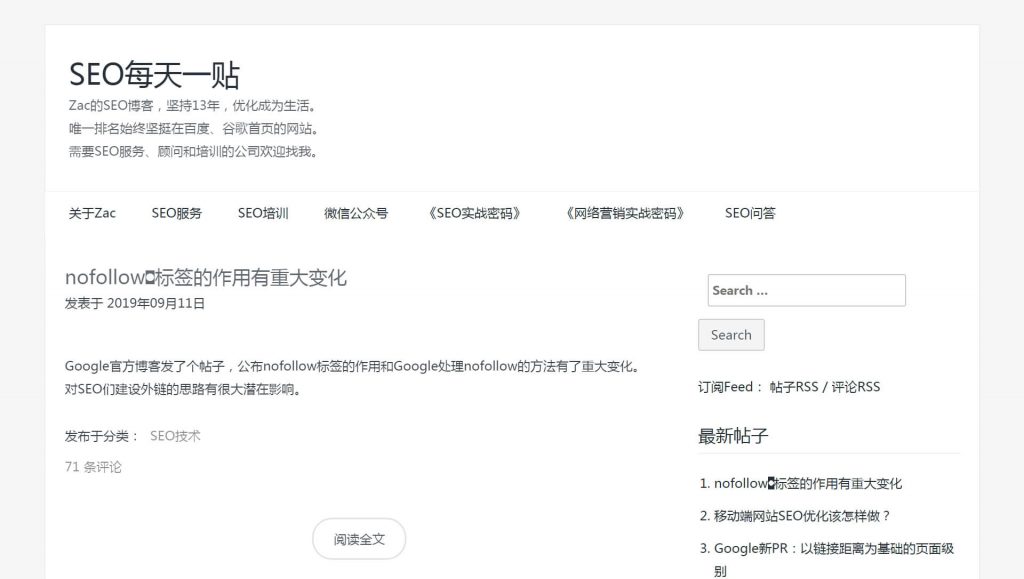 SEO每天一贴,是SEO专家Zac更新的博客内容,Zac拥有18年SEO经验,并坚持13年更新SEO每天一贴,中文SEO优化行业旗帜性博客。Zac分享网站优化排名技术,专业SEO培训、顾问咨询等SEO服务,为SEO爱好者提供最新的技术信息。