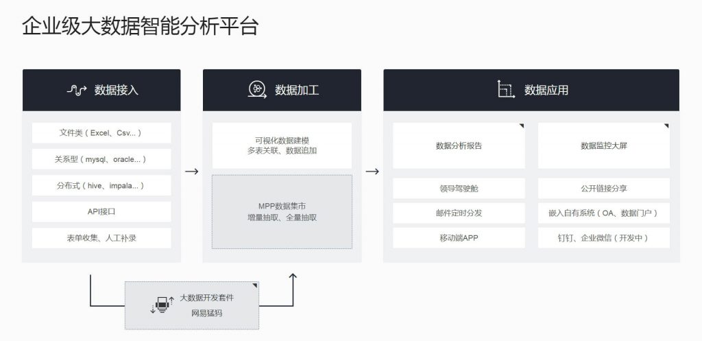 网易有数企业级大数据智能分析平台,具有全面的安全保障、强大的大数据计算性能、先进的智能分析、便捷的协作分享等特性。